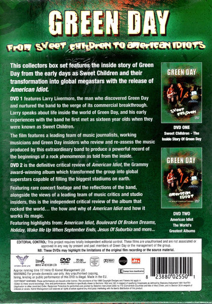 Green Day – From Sweet Children To American Idiot - 2xDVD - DVDs Nuevos (M) / Portadas Nuevas (M) / Slipcase Muy Buen Estado (VG+)