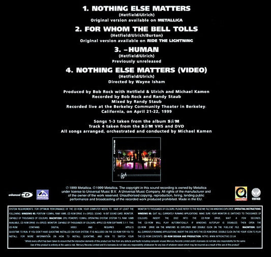 Metallica With Michael Kamen Conducting The San Francisco Symphony Orchestra – Nothing Else Matters - CD - Como Nuevo / Like New (M- / M-)